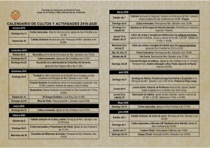 Calendario de cultos y actividades 2019-2020