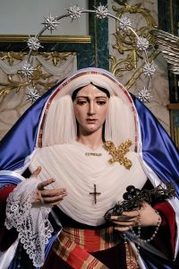 María Santísima de la Estrella aparece vestida a la vieja usanza hebrea, con tocado de tul, saya de terciopelo burdeos y fajin de rayas. Además estrena un manto de raso azul, donación de un hermano.